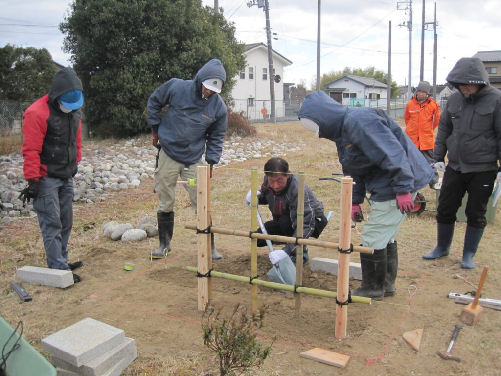 講師の佐藤三郎氏から「普段の仕事とは少し違う工程がありますが、竹の使い方、石の選び方や置き方等庭づくりの基本になるのでしっかり勉強し、今日一日頑張ってください。」と激励のご挨拶がありました。